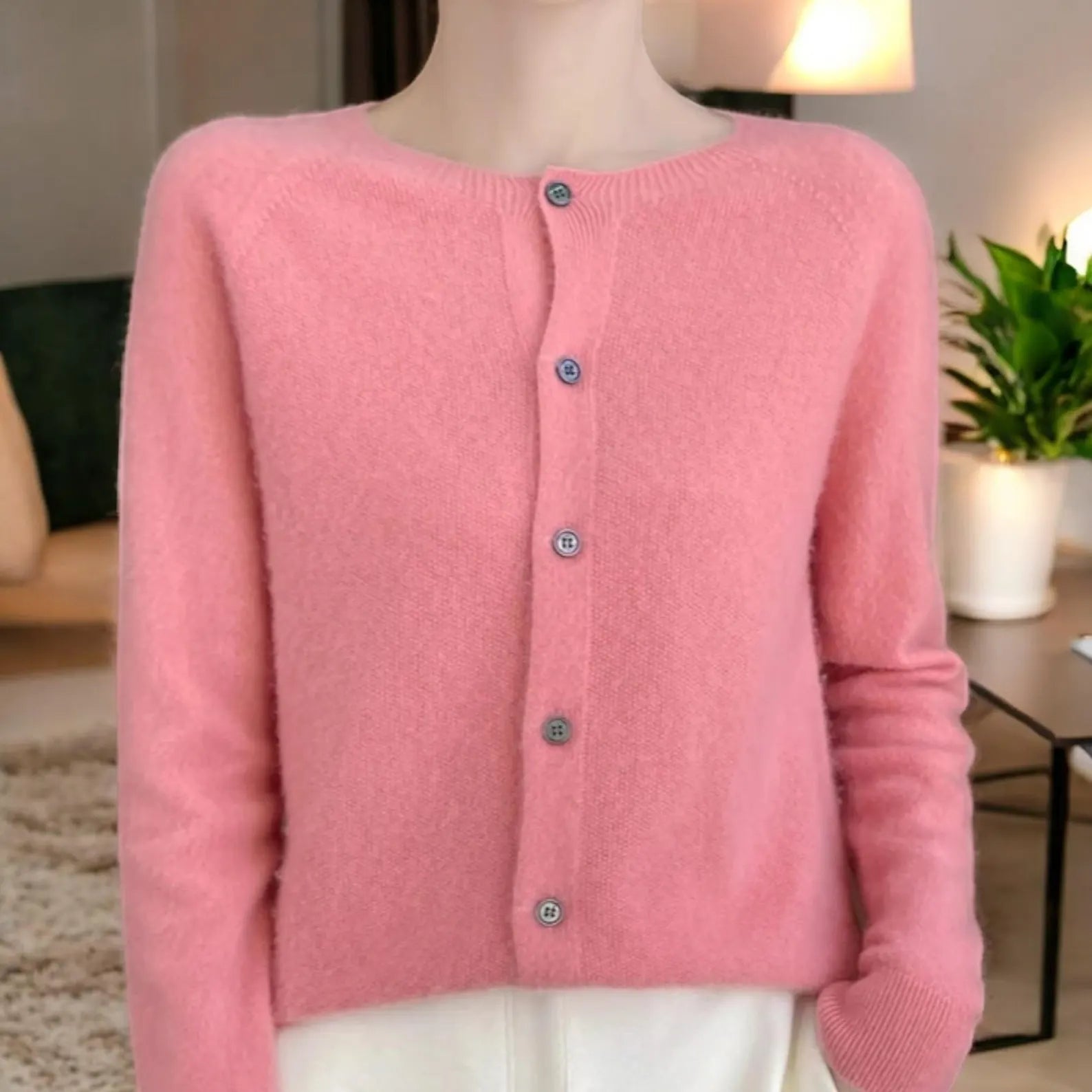 Ajoutez une touche luxueuse à votre garde-robe avec ce cardigan en cachemire pour femme. Doté d’un col rond classique et d’une coupe ample, il allie confort, chaleur et style intemporel, parfait pour les journées fraîches.