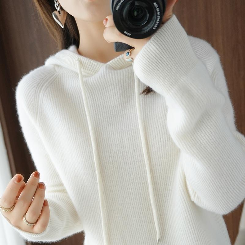 Pull Court en Cachemire à Capuche pour Femme - Coupe Ample et Confortable