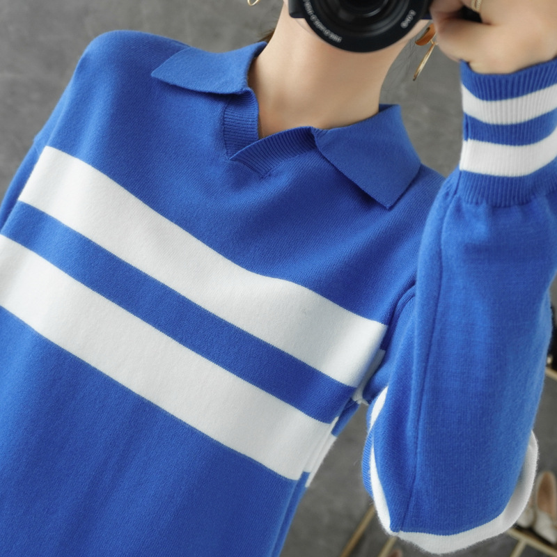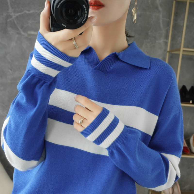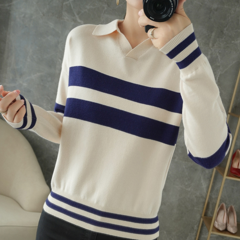 Pull en Laine Rayé à Col Relevé, Nouveau Style Hiver, Top Étudiant